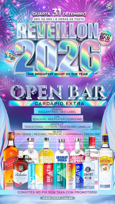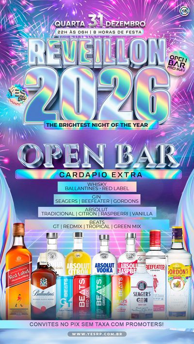 Prepare-se para 8 horas de festa com um super open bar premium a noite toda! 🍾🔥